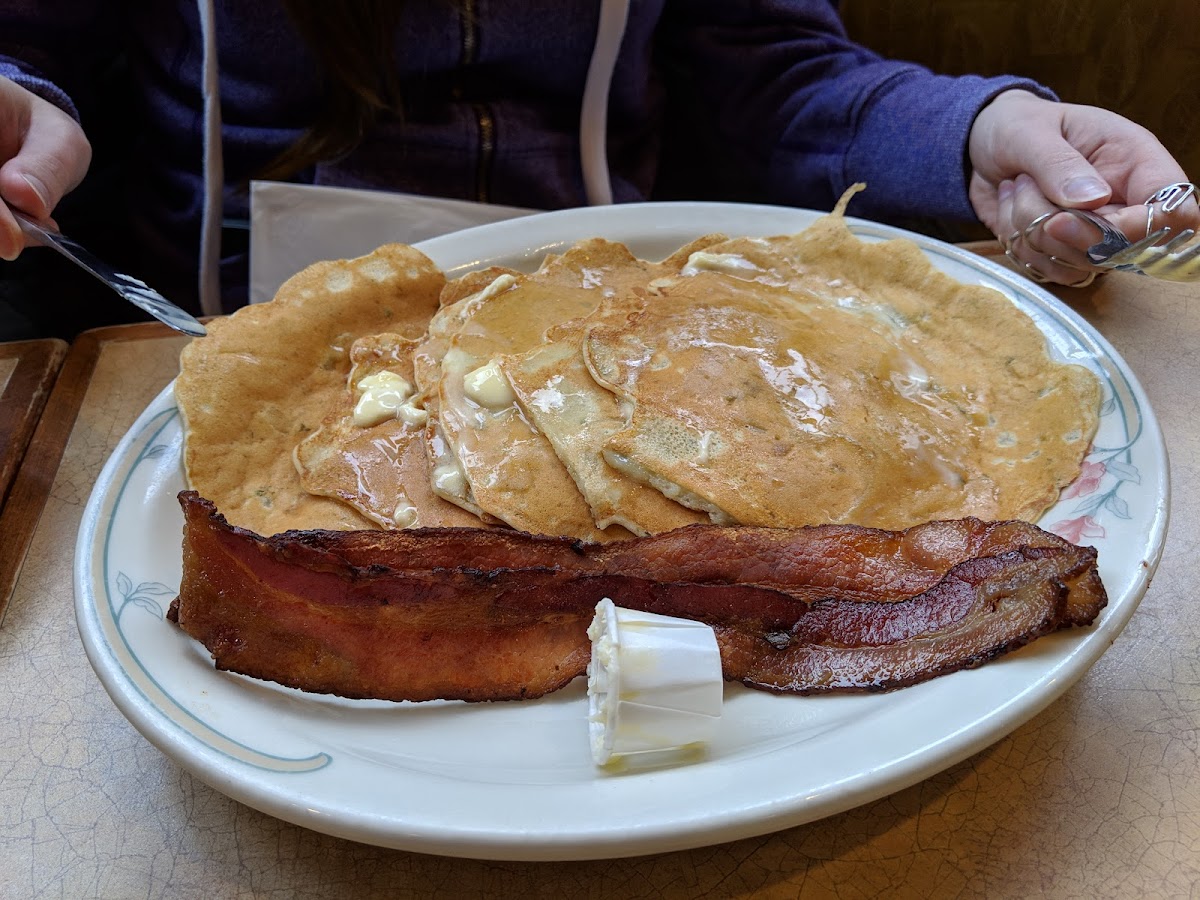 Pancake house vibes. Portions are big and coffee is decent. Will be back again. Update: this time i got the very nut and berry pancake. Had the same but on a waffle so good. Service is always great and on point.